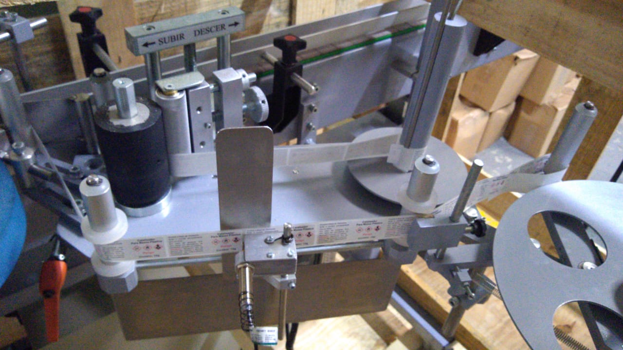 Características: Esteira transportadora 3,00 metros de comprimento com motorredutor e inversor de frequência; esteira superior para travamento das embalagens com motorredutor e inversor de frequência; Equalizador mecânico para alinhamento das embalagens com motorredutor e inversor de frequência; dispositivo no final da esteira para massagear embalagens de formato cilíndrico, com motorredutor e inversor de frequência; cabeçote aplicador de rótulos com motor de passo e sensor para leitura de rótulos transparentes; clp com ihm touch screen para acessar as funções do equipamento; rodízios para locomoção; regulagem de altura para adequação em linha de produção; estrutura em aço 1020 e pintura eletrostática (opcional aço inox); Componentes de automação- todos de marcas conceituadas e são de fácil acesso no mercado nacional. Consulte também: projetos especiais, acessórios e equipamentos para sua linha.